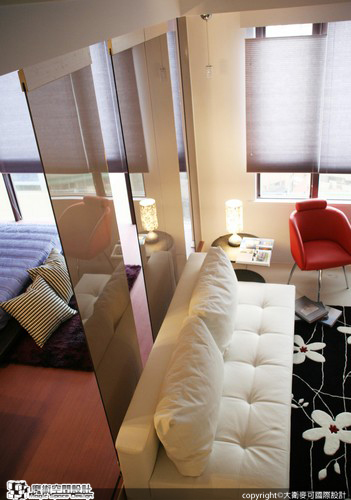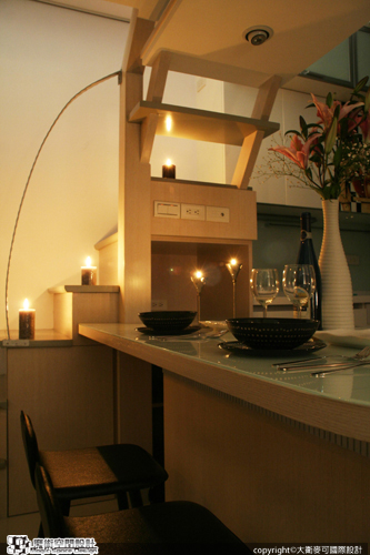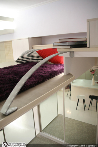 設計概念:這是一處非常相當有層次的超立體空間,大衛麥可國際設計透過精確的空間整合概念,融入高難度的施作技巧,將室內有限的高度與地坪妥善分配、利用,基本架構完成後,再加上浪漫與舒適、機能和品味兼容並蓄的經營方向,成功打造出單身都會男女,或是頂客族們莫不渴望擁有的時尚小豪宅。