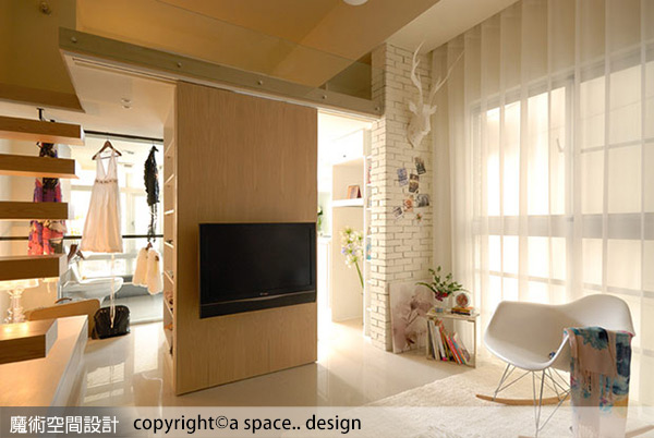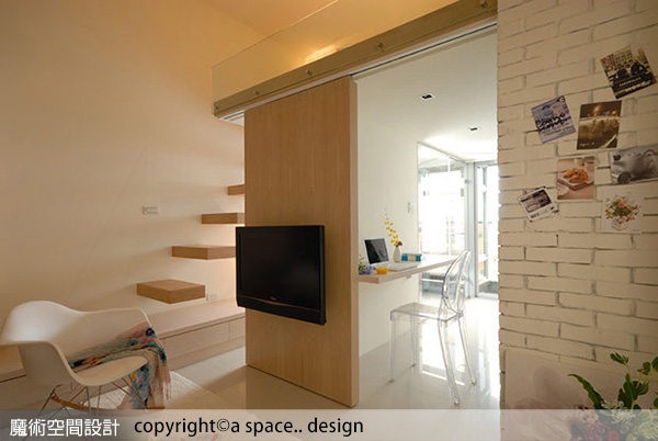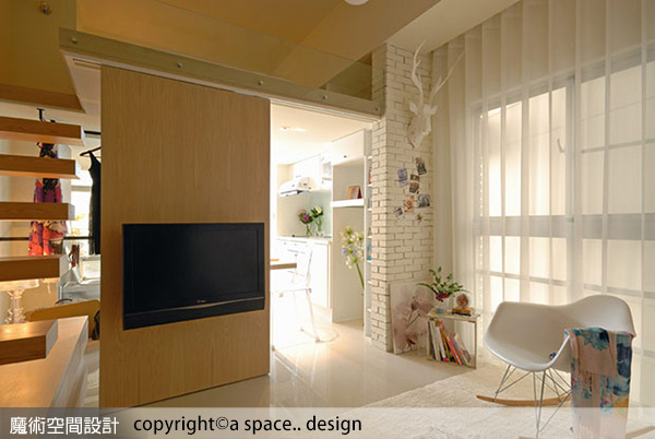 a space..design陳焱騰設計師規劃活動式的主牆面,讓空間的自由度變大了,同時豐富採光效果也增加了。