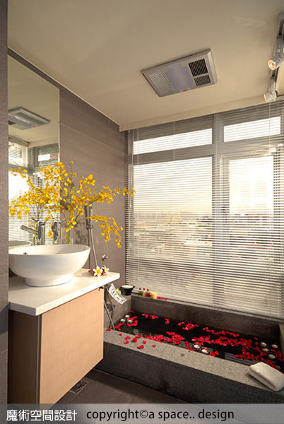 a space..design陳焱騰設計師以降版式浴缸規劃衛浴空間,藉由開窗引入城市景況,與充沛陽光,建立舒適的生活氛圍。